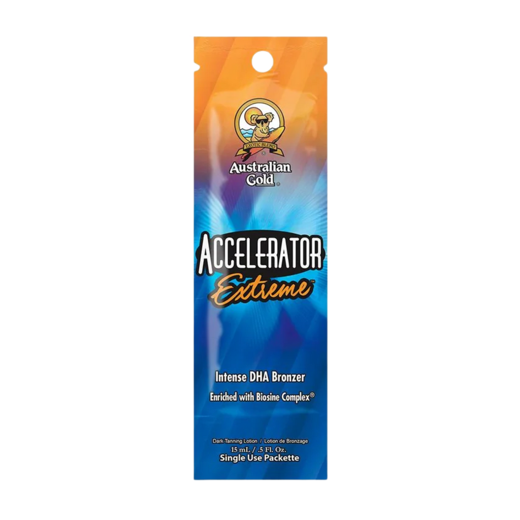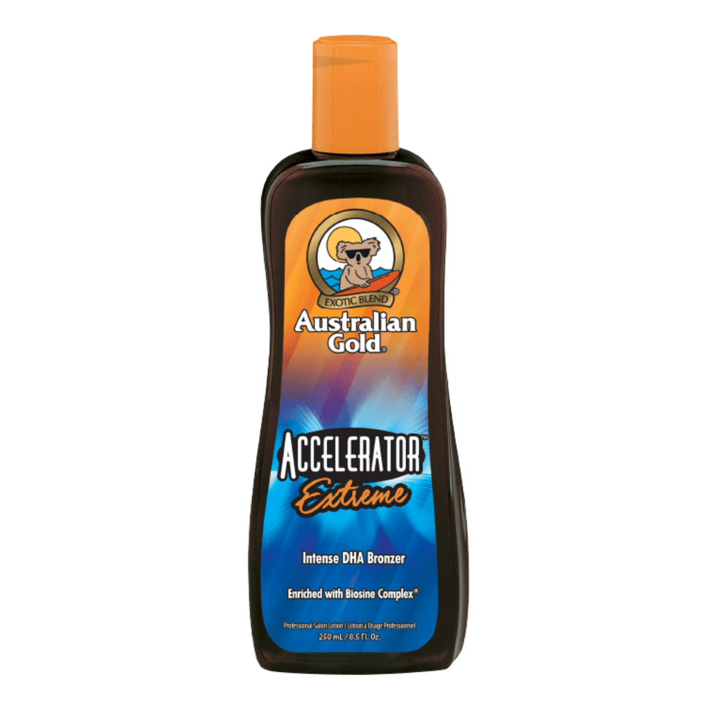 Australian Gold Accelerator Extreme is a supercharged version of the classic Accelerator formula, combining intense DHA + natural bronzers for immediate visual impact and deeper, longer-lasting colour. Infused with the proprietary Biosine® Complex, as well as Echinacea extract and skin-nourishing oils, this formula hydrates, conditions, and supports healthy bronzing. Ideal for trade customers and salons seeking a high-performance bronzing accelerator with premium skincare benefits.
