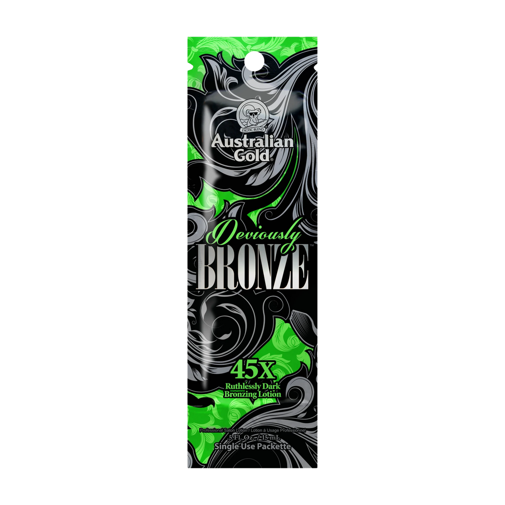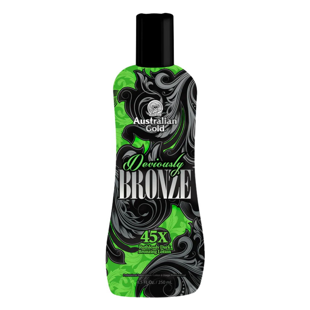 Australian Gold Deviously Bronze is a high-power hybrid bronzer tanning lotion designed for trade customers and salon professionals working with experienced tanners. Featuring an intense 45X bronzing blend, this advanced formula delivers an immediate dark colour boost through natural bronzers and melanin, while DHA develops a deeper, longer-lasting golden tan over time. Enriched with the Twisted Skincare Cocktail, Hemp Seed Oil, Aloe Vera and Shea Butter, it deeply nourishes and conditions the skin for a smooth, hydrated finish and bold, hard-to-ignore results.
