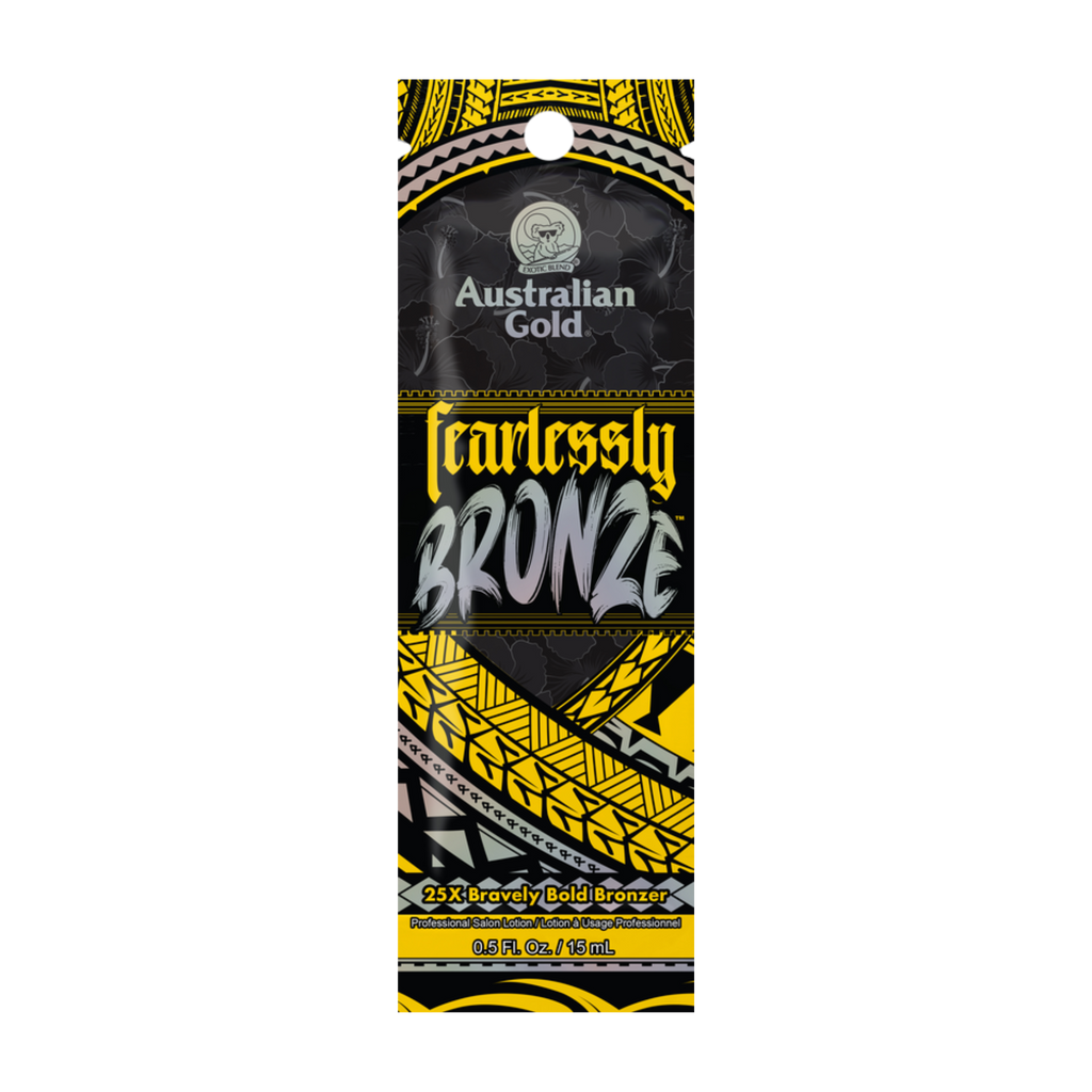 Australian Gold Fearlessly Bronze is a hybrid bronzer tanning lotion introduced in 2023 as part of the Iconic Collection, marking a new era of skincare-focused tanning. Featuring a 25X bronzing blend, this advanced formula combines immediate bronzers for an instant sun-kiss with DHA for deeper, developed colour over time. Enhanced with DermaDark® and tattoo-protecting technology, it delivers reliable, even colour development while deeply hydrating and conditioning the skin in a lightweight, unisex formula.