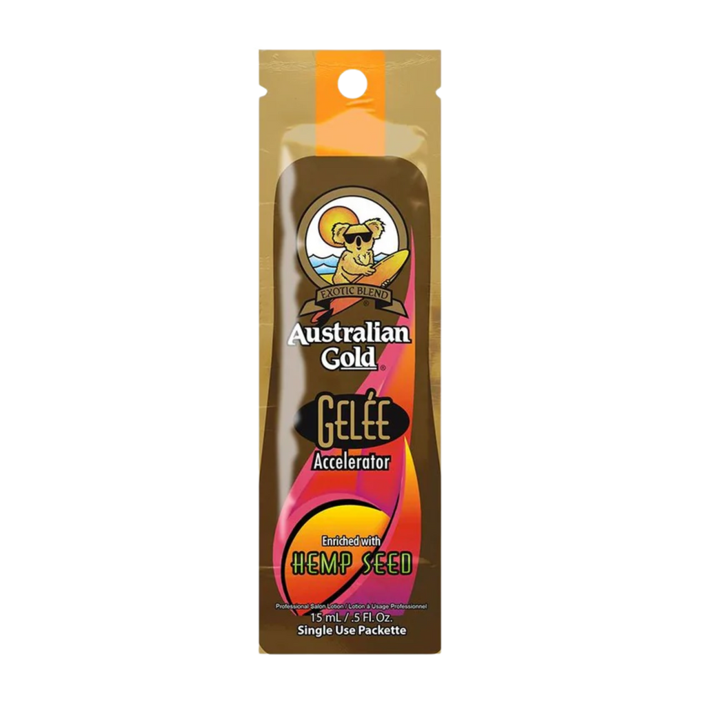 Australian Gold Gelée with Hemp is a bronzer-free tanning accelerator gel designed for trade customers and salon professionals supporting natural tan development. This lightweight gel formula helps enhance the tanning process during sun exposure while locking in moisture for a smooth, hydrated skin feel. Enriched with Hemp Seed Oil and Vitamin E, it conditions the skin and helps maintain comfort during tanning. Ideal for clients who prefer clean, natural colour results without cosmetic bronzers.