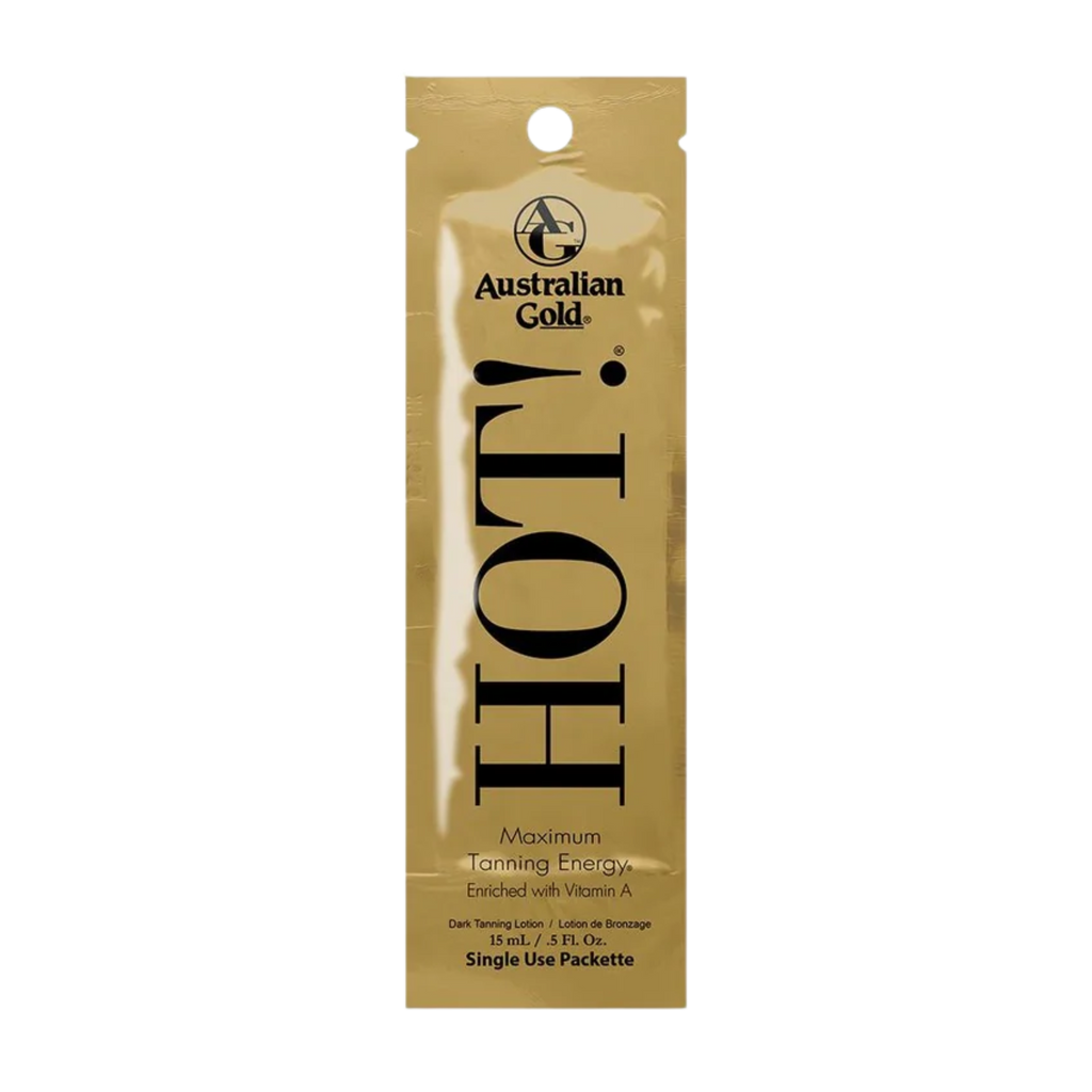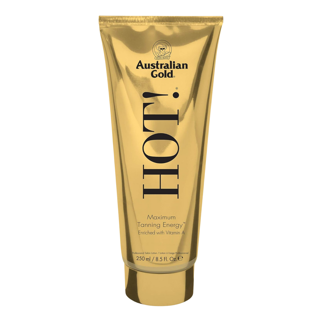 Australian Gold Hot! is a bronzer-free tanning accelerator and one of the brand’s best-selling tanning lotions worldwide. Built on an industry-exclusive concentrated Aloe Vera Gel base, it helps to heal, soothe and deeply moisturise the skin for healthy, smooth tanning results. Maximum Tanning Energy® supports the skin’s ability to retain moisture for longer, helping promote a darker, longer-lasting natural tan. Enriched with Omega Oils, Vitamins, Amino Acids and Australian Tea Tree Oil, Hot! delivers exceptional skin care while supporting deep, even colour development. Suitable for indoor tanning and outdoor use when layered with sun cream.