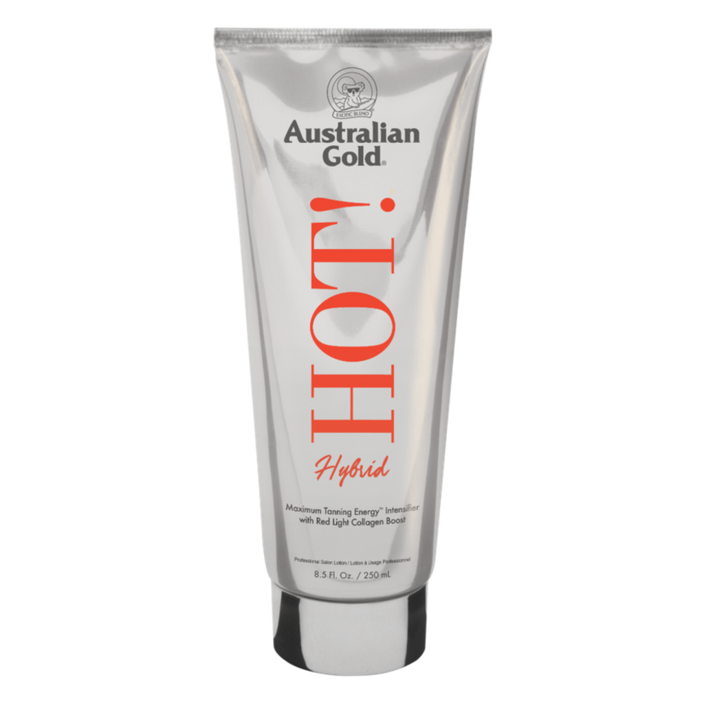 Australian Gold Hot! Red Light Enhanced Formula is a bronzer-free tanning accelerator developed specifically for use in red-light and hybrid sunbeds. This upgraded version of the iconic Hot! formula combines an Aloe Vera-rich base with red-light collagen-boosting peptides to support skin smoothness, hydration and natural colour development. Designed to work alongside red-light therapy, it helps promote collagen and elastin production while delivering the deep hydration and tanning performance Hot! is known for.