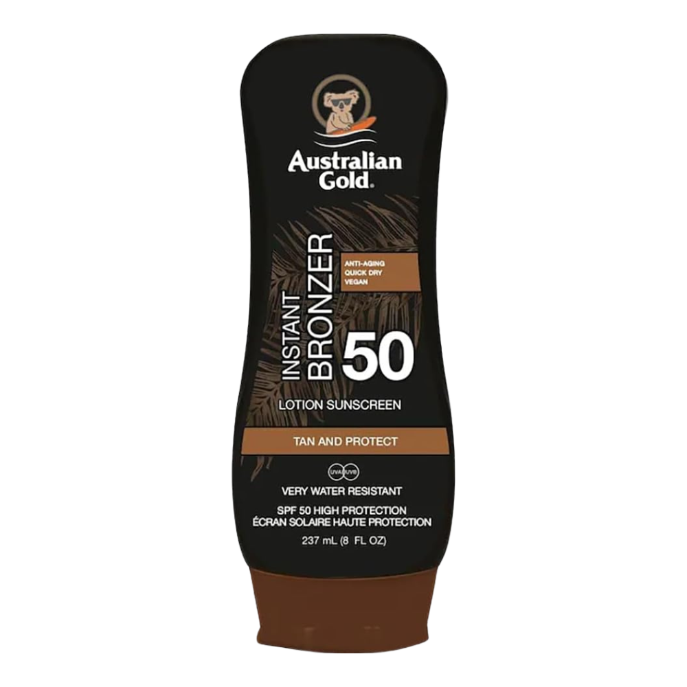Australian Gold SPF 50 Lotion Sunscreen with Instant Bronzer is a high-performance sunscreen designed to deliver strong UV protection alongside an immediate golden glow. Enriched with skin-loving botanicals and natural caramel bronzers, this broad-spectrum formula hydrates, protects, and enhances your skin tone—perfect for outdoor tanning and a premium option for trade customers who want protection without sacrificing radiance.