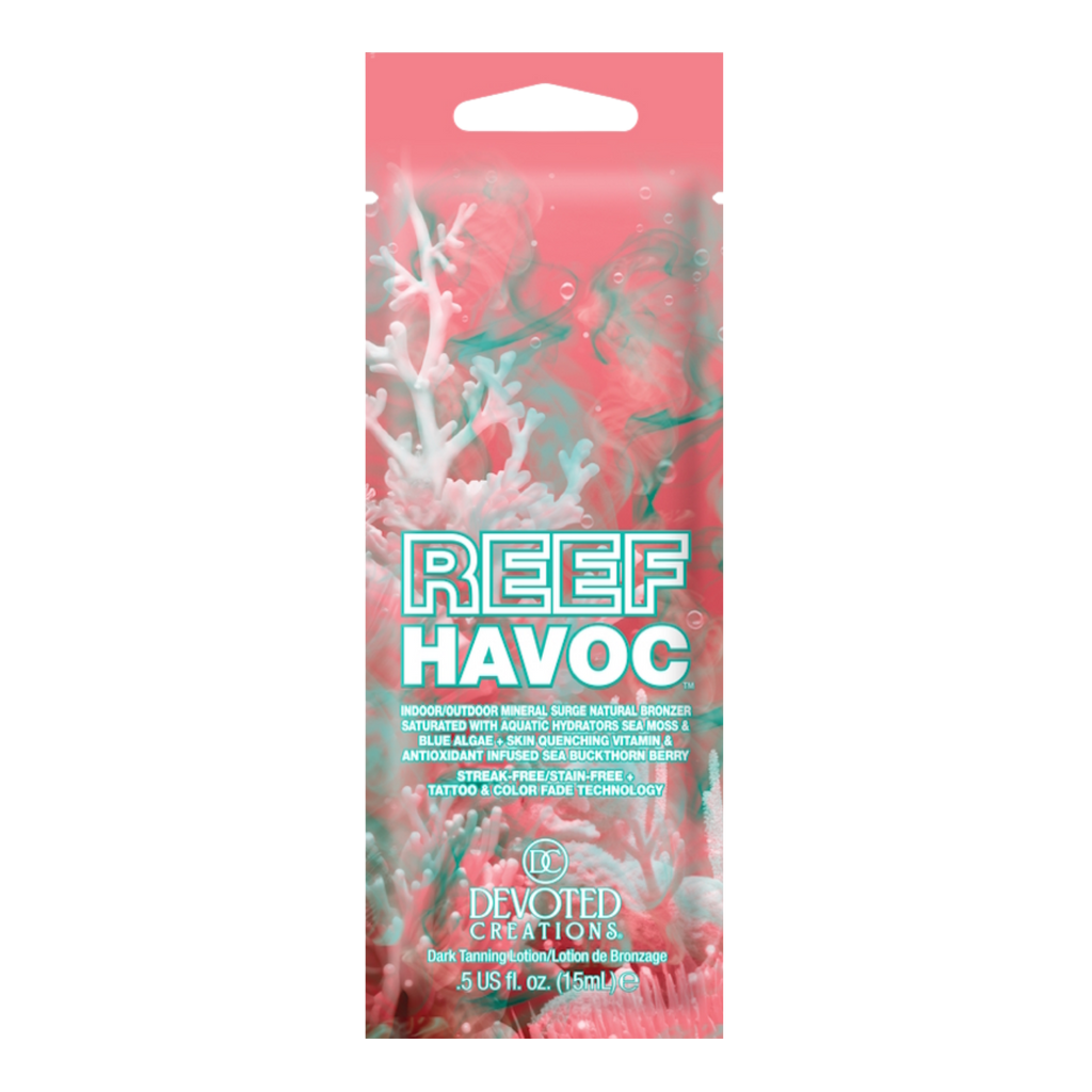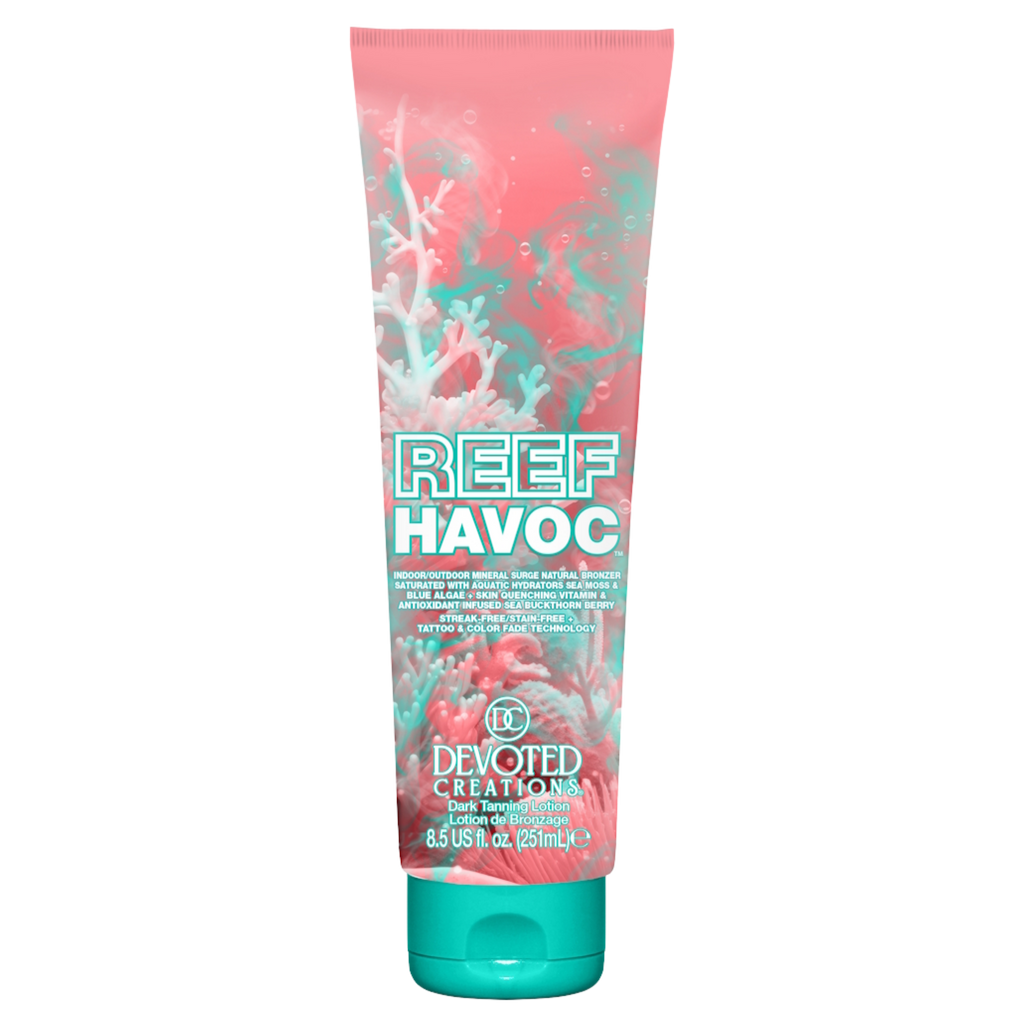 Devoted Creations Reef Havoc is a mineral-rich tanning bronzer designed to deliver instant, sun-kissed colour without the use of DHA. This advanced ocean-inspired formula provides smooth, streak-free results with no transfer, making it perfect for both indoor and outdoor tanning sessions. Lightweight and skin-conditioning, Reef Havoc enhances your glow while keeping skin hydrated, nourished and radiant. Not a sunscreen.