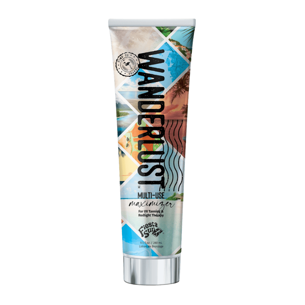 Fiesta Sun Wanderlust — for salons and trade professionals looking to offer a versatile, skincare-led tanning solution that works seamlessly across UV tanning and red light therapy. This Multi-Use Maximiser is designed to enhance natural tanning results while delivering advanced skin care for a more youthful, healthy-looking glow.